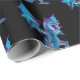 Fantasy Blue Fire Dragon Black Geschenkpapier