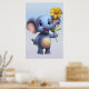 Poster eines niedlichen Cartoon Elefanten stehend fröhlich, mit einer großen gelben Blume mit seinem Kofferraum. Der spielerische Charakter hat große blaue Augen und einen fröhlichen Ausdruck.