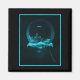 Eine gigantische Kristallkugel mit einer türkisblauen Metropole im Inneren. Ein Blitz, der über der Stadt fliegt, verleiht Interesse und Persönlichkeit. Der Globus sitzt auf einem eisigen Sockel. Cooles Fantasiedesign in Schwarz und Türkisblau. Die Umgebung wirkt eisig, aber dennoch ruhig.