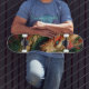 Fantasy Dragon Skateboard in Gold, Korallen und Türkis.