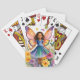 Kartenspielen mit einer jungen Märchenfee mit lebhaften Schmetterlingsflügeln, umgeben von bunten Blume, die ein Gefühl von Magie und Laune ausstrahlen. Ihr Kleid spiegelt die Farben ihrer Flügel wider, die zu den hellen Schmetterlingen passen, die um sie herumflattern.