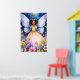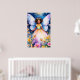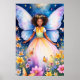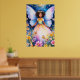 Das Poster eines jungen Mädchens mit Schmetterlingsflügeln steht in einem lebendigen Garten, umgeben von bunten Blume und leuchtenden Sternen. Ihr Kleid ist farbenfroh, und sie trägt eine Krone Blume in ihrem lockigen Haar.