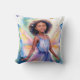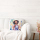 Kopfkissen mit einer fröhlichen Kinderfee mit bunten Schmetterlingsflügeln stehend in einem fließenden lila Kleid, umgeben von Schmetterlingen und sanften, traumhaften Farben. Die Szene vermittelt ein Gefühl von Laune und Magie in einem lebendigen, naturlich inspirierten Rahmen.