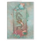 Elegante Wirbel von Algen und anmutigen Fantasy-Fischen über einem pastellfarbenen Pfirsich und Aqua Blue Aqua-Aqua-Effekt Hintergrund.