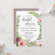 Im hübschen Boho-Stil empfängt Sie diese Brautdusche mit einem offenen Blumenkranz mit rosa, bordeauxfarbenen und blassfarbenen Lavendel-Rose und einer üppigen Waldlandschaft. Die Rückseite ist mit einem luxuriösen Lila- und Metallmuster versehen.