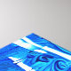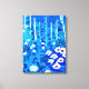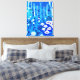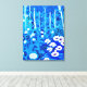 Leinwand in einer halbabstrakten Abbildung eines Fantasy-Waldes mit Blume, Blättern, Bäumen und Vögeln, in Kobaltblau und Weiß