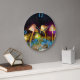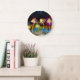 Fantasie fühlen Wanduhr mit Kunstwerken von bunten, leuchtenden Pilzen. Passen Sie Ihren eigenen Text an.