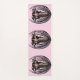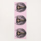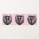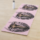 Diese Yoga-Matte ist rosa mit drei fantasievollen Goddess-Frauen mit langen schwarzen Haaren, die in einer abstrakten schwarzen Blume offen stehend sind.