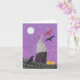 Fantful Halloween oder Samhain Card mit winzigen Haus, Vollmond, Kürbissen und Krähen. Hübsch und spukend. Bleib drinnen.