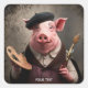 Fantasy Niedlich Artist Painter Pig Quadratischer Aufkleber