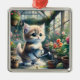 Fantasy Niedlich Cat Garden Blume Ornament Aus Metall