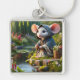 Fantasy Niedlich Mouse Fischerei Blume Schlüsselanhänger