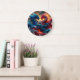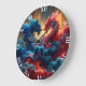 Fantasy Niedlich Red Blue Dragons Große Wanduhr