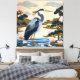 Fantasy Niedlich Vivid Japanischer Heron Blue Leinwanddruck