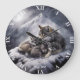 Fantasy Niedlich Wolf Family Winter Große Wanduhr