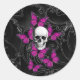 Fantasy-Schädel und heiß rosa Schmetterlinge Runder Aufkleber