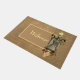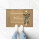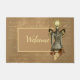 Vintages Aussehen Viktorianisch / Steampunk Fantasy-Büste in extravaganter Weste mit Schmetterlingsflügeln, unten Bouquet und Glühbirne oben auf ephemera Hintergrund mit anpassbarem "Welcome" Text. Perfekt für Steampunk-Tee-Partys, Veranstaltungen, Expos, Vintage Kostümgeschäfte und vieles mehr