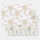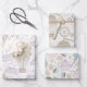 Hübsches Fantasy-Thema mit drei verschiedenen Mustern. Lila und rosa Heliumballons mit einem Korb, der mit Blätter und Wirbel geschmückt ist, ein Heißluftballon mit einem dreieckigen Diamantendesign in blau, orange und gelb mit Penny-Farthing-Fahrrädern und eine Sammlung von Teeköpfen, Doodle-Vögeln und Teapcups.