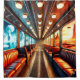 Dieser Fantasy-Duschvorhang hat ein wirklich cooles Bild von innen in einem Zug, der auf eine Fantasy-Landschaft auf beiden Seiten des Zuges blickt.