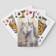 Kartenspielen mit zwei Einhörnern stehend in einem traumhaften Feld mit weichen, pastellfarbenen Blume. Ihre fließenden Mähne erwecken das Licht eines sanften Sonnenuntergangs und heben ihre majestätische Präsenz hervor.