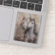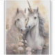 Transparenter Aufkleber von zwei Einhörnern, die eng in einem verträumten Feld mit weichen, pastellfarbenen Blume stehend sind. Ihre fließenden Mähne erwecken das Licht eines sanften Sonnenuntergangs und heben ihre majestätische Präsenz hervor.