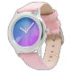 Kinderuhr aus Edelstahl mit rosa Lederarmband