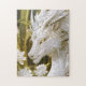 Fantasy White and Gold Dragon mit Blume Puzzle