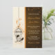Die Einladungen in Metallic, Orange und Braun sind perfekt für eine Hochzeit im Herbst mit einem wunderschönen Vogelkäfig mit magischen, märchenhaften Wirbel, einem Orangenherz und zwei niedlichen Vögeln. Ein glänzendes orangefarbenes Band trennt eine tiefe schokoladenbraune Sidebar, die den Wortlaut der Hochzeitseinladung in Creme und Hellorange enthält. Die Einladungsworte in abwechselnden Skripten und klassischen Serif-Schriftart ist vollständig anpassbar.