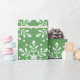 Weihnachtsgeschenkpapier mit weißen dekorativen Schneeflocken Blätter auf grünem Hintergrund. Passen Sie die Hintergrundfarbe Ihrer Wahl an.