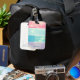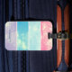Gepäckanhänger mit Wasserfarbengefälle mit Blasen-Effekt in verschiedenen Pastellfarben Rosa, Himmelblau, Türkis und Lavendel mit benutzerdefinierten Monogramm in Sans Serif Schriftart