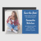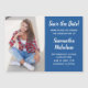 Erstellen Sie Ihre eigene blaue (bearbeitbare) benutzerdefinierte Foto-Abschluss "Save the Date" Magnetkarte. Text ist ein moderner Schriftart für Pinselskripte. Verwenden Sie Zazzles Hintergrundfarben-Tools, um diese Karte zu bearbeiten.
