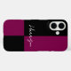 Mit diesem farbenfrohen Handy-Gehäuse genießen Sie eleganten geometrischen Stil und individuelle Eleganz. Das moderne Handy-Cover zeichnet sich durch auffallende Schwarz- und Bordeaux-Blöcke aus, die mit Ihrem Namen in weißem Schriftzeichen für eine individuelle Touch gepaart sind. Ideal als personalisiertes Geschenk oder ein Upgrade auf Ihre alltägliche Technik, kombiniert dieser Fall Praktikabilität mit klassischer minimalistischer Ästhetik.