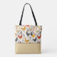 Dieser einfache Illustrationsdruck von Rot, Orange, Braun, Schwarz und Hähnchen eignet sich perfekt für eine vollflächige Tüte aus Tüte. Das untere Drittel (ca. 10 cm) ist ein koordinierender Feststoff mit einem dünnen Streifen. Tragetaschen sind ein lustiges saisonales ästhetisches Accessoire. Großes kleine Geschenk auch! AI unterstützte Grafik, die mit kommerzieller Lizenz erworben wurde. Artwork: PaintPixelCo