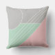 Trendy pastellrosa, minzgrün und grau geometrisch dekorative Kissen mit einem Kreis, Dreieck und Rechteck Formen und dünnen Linien.