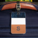 Farbblock Navy Blue, Orange Monogram, Gepäckmarke Gepäckanhänger