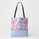 Diese abstrakten, rosa und blauen Aquarelltaschen eignen sich hervorragend für eine vollflächige Tasche mit Aufdruck. Das untere Drittel (ca. 10 cm) ist ein koordinierender Feststoff mit einem dünnen Streifen. Tragetaschen sind ein lustiges saisonales ästhetisches Accessoire. AI unterstützte Grafik, die mit kommerziellem Einsatz erworben wurde. Kunstwerk: CosmicMeta