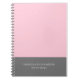 Behalt alle wichtigen Noten in diesem eleganten und modernen Notizbuch. Personalisieren Sie Ihre persönlichen Daten mit Ihrem Namen oder Firmennamen und Beruf / Jobtitel oder Tagline. Es zeigt einen Farbblock in Rosa und Grau.