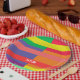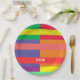 Farbblock Streifen Monogramm Name Regenbogen Pappteller