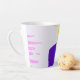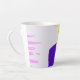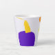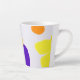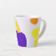 Diese Tasse weist lebendige, Bio Formen wie Gelb, Orange und lila auf ihrer lila Oberfläche auf.