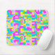 Ein Mousepad mit einem bunten abstrakten Design aus einer bunten abstrakten Vektorgrafik in magenta, blau, pink, grün und gelb.