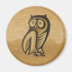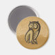 Owl Ikone auf beige grunge Hintergrund. Symbol der Weisheit und des Reichtums.