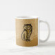 Owl Ikone auf beige grunge Hintergrund. Symbol der Weisheit und des Reichtums.