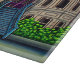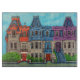 Lebhaftes, stilisiertes Gemälde der farbenfrohen Viktorianischen Reihenhäuser am Saint-Louis-Platz im Plateau-Viertel Montreal, Quebec, Lisa Lorenz auf einem Schneiderbrett.