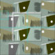 Modernes Bumeranggewebe der Mitte des Jahrhunderts in Grauem und in aquamarinem auf einem Avocadogrünhintergrund. Schneidene Linien der klassischen Mitte des Jahrhunderts und Sternchen-Vereinbarung.