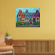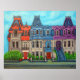 Lebhaftes, stilisiertes Gemälde der farbenfrohen Viktorianischen Reihenhäuser am Saint-Louis-Platz im Plateau-Viertel von Montreal, Quebec, von Lisa Lorenz