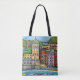 Bunte stylized malende Szene von Vernazza, Cinque Terre durch populären Künstler Lisa Lorenz jetzt, der auf einem stilvollen ganz vorbei verfügbar ist - drucken Sie Taschen-Tasche.