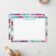 Personalisieren Sie diese femininen Aquarellblumen-Mitteilungskarten mit Ihrem Namen, um behalten, um attraktive Dankeschön-Noten auszuspannen, in Touch behalten und handgeschriebene Notizen an andere zu senden. Dieses geschmackvolle Design mit hübschen Fuchsienfarben (heißes Rosa), türkisfarbenem Wasser, lila und hellen Rosatönen in einem Blumenrahmen, der eine weiße rechteckige Mitte umgibt, in der Sie Ihre Notizen schreiben können. Die Textvorlage kann mit Ihrem Namen, Ihrer Firma oder einem anderen gewünschten Text personalisiert werden.