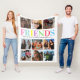 Personalisierte beste Freundin Freundschaft Fleecy Decke mit einem schicken weißen Hintergrund, der in jede Farbe verändert werden kann, 9 Fotos von Ihnen und Ihre bestie, das Wort "Freunde" in mehreren Farben, Ihre Namen, und eine bearbeitbare Freundschaft Zitat.
