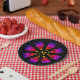 Farbige CHRISTMAS TREE Monogram Paper Teller, die ein mehrfarbiges Baummotiv auf einem reichhaltigen BLACK Hintergrund zeigen, in der Mitte ein gelbes MONOGRAM. Fügen Sie einfach Ihr Monogramm hinzu (oder löschen Sie es nach Wunsch). Ideal für ein festliches Party, besonders zu Weihnachten und während der Festsaison. Matching-Elemente verfügbar.