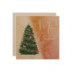Ein wunderschöner Weihnachtsbaum mit Ornamenten , Bändern, Lichtern, Garland, Kiefernzapfen. Und eine Nachricht: Frohe Weihnachten!